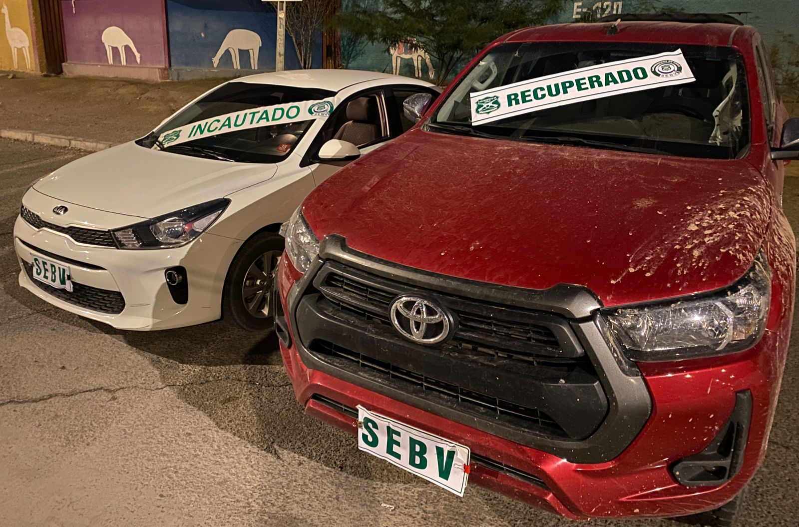 Durante la tarde ayer, se registró el robo de una camioneta, por lo que inmediatamente comenzó la búsqueda de este móvil por parte de la Sección de Encargo y Búsqueda de Vehículos (SEBV) de Carabineros, quienes lograron recuperarla, además de detener a dos sujetos e incautar el automóvil en el que intentaron huir.